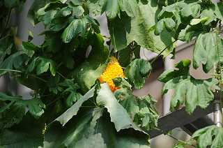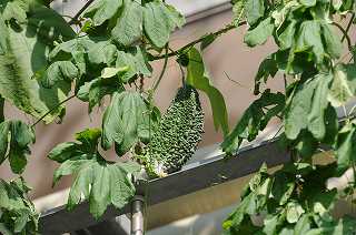 緑のカーテンのゴーヤが、次から次へと実を付けています。