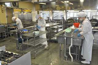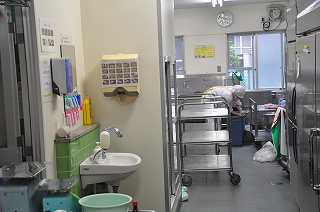 前期前半の給食が終わったので、給食室の清掃が行われています。