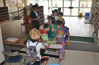 昨日は雨のためにできなかったので、今日が初日になります。この回は高学年です。受付から始まります。