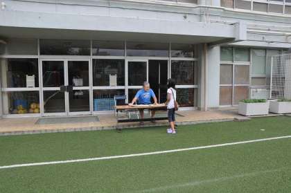 SSA水泳教室に参加するために子どもたちが集まってきました。