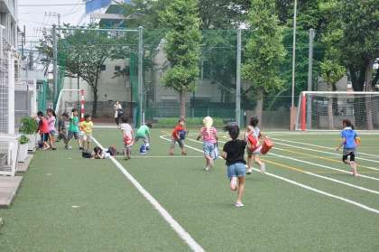 プールが終わり、着替え終わった子どもたちが下校しています。