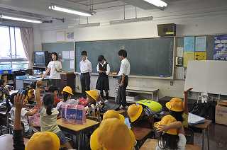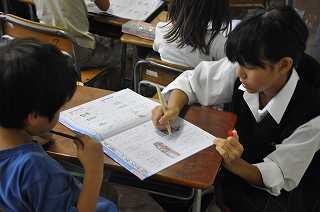 中央中の1年生が、サマースクールのお手伝いに来校しました。1年生の補習を担当し、1年生が解いた問題の○付けをしました。