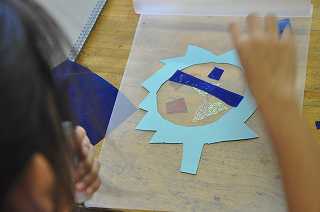 「作ってみよう 自分のマーク」という課題に向けて、作品を作っています。