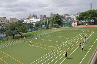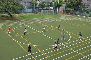 ティーボール教室が始まりました。まず、キャッチーボールの練習です。