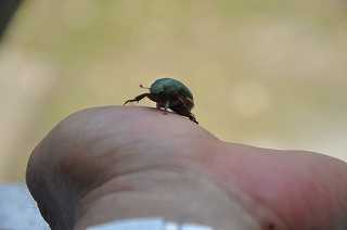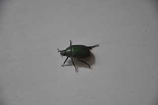 職員室前の廊下に、カナブンがいました。手のひらに乗せてやると、飛んでいきました。