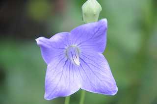 紫色の花のキキョウが咲き始めました。