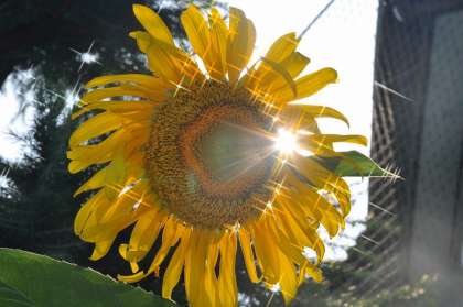今朝もひまわりが、青空に映えてきれいに咲いています。