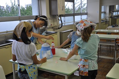 今日は、夏のおやつ「かき氷」を作っています。