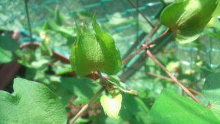 綿の花が終わった後に三角帽子ができています。