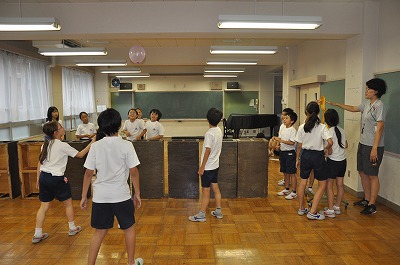 雨が降って外で活動ができないために、風船を使ったゲームをしました。
