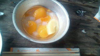 清東園キャンプ場にいます。キャンプで最後の食事のデザートは、フルーツポンチでした。12:25