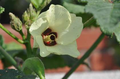 オクラの花がきれいに咲いています。