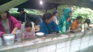 清東園キャンプ場にいます。みんなで「ごちそうさま」をしたあとで、片付けをしました。12:45