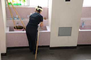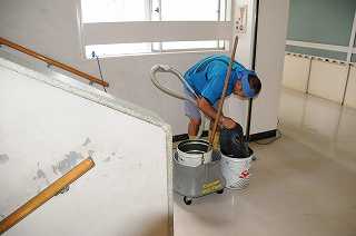 階段は機械が使えないので、一段一段手作業できれいにしていきます。