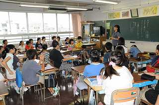 6年1組の1時間目の様子です。夏休みの生活について話しています。
