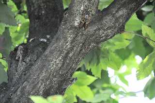 種類の違う2匹のセミが、競い合って鳴いています。