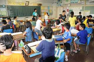 4年2組の1時間目の様子です。夏休みの生活について話しています。