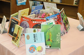図書室のディスプレイが、少しずつ秋バージョンになってきました。