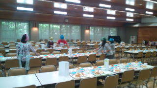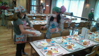 食事係による朝食の準備が進んでいます。6:45