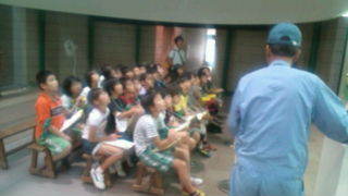 4年生が中央防波堤の管理事務所にいます。ゴミの話を聞いています。9:20