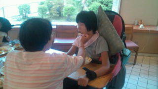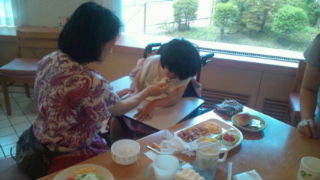 宿舎あゆみ荘にいます。みんなで朝食です。8:20
