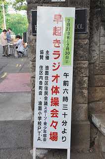 油面住区住民会議主催のラジオ体操が、昨日は雨で中止になったために、今日から始まります。朝6時前から準備が進められています。このラジオ体操は、7月30日まで行われます。担当の皆様、今年もよろしくお願いいたします。