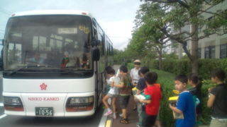 4年生が中央防波堤の管理事務所にいます。バスに乗り実際に中央防波堤を見に行きます。9:35