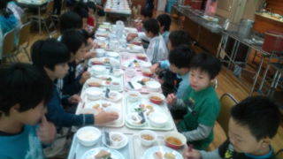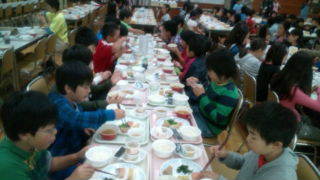 朝食の準備が終わりました。みんなでいただきます。7:00