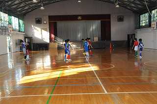 体育館で、サッカーの練習が行われています。