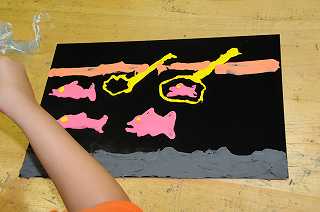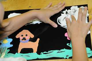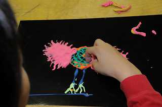 自分で作ったカラー粘土を使って絵を描いています。