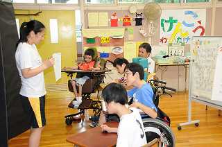 朝の会です。夏休みの話をしています。