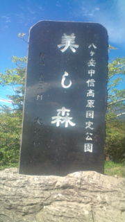 ハイキングのゴール地点の美し森にいます。子どもたちはゴールを目指して歩いています。10:10