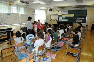 パートに分かれて歌い、音の重なりを楽しんでいます。