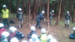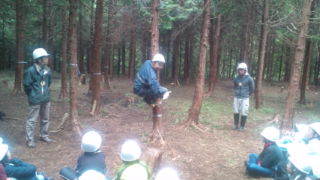 みずがきランドにいます。ブリナワを使った木登りの説明を聞いています。9:45