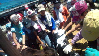 八ヶ岳ふれあいファームにいます。次は子牛とのふれあい体験です。11:20