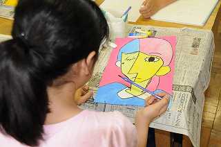 自画像をデザイン化し、作品に仕上げています。