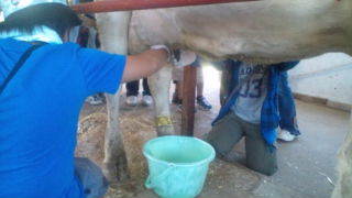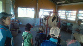 八ヶ岳ふれあいファームにいます。次は搾乳体験です。11:40