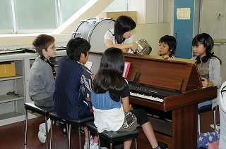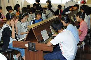 班ごとに「私たちだけのこきょうの人々」をアンサンブルオルガンを使って工夫しています。