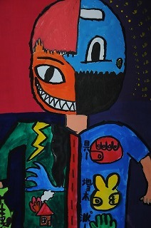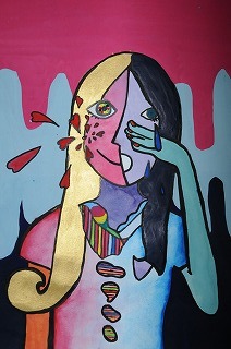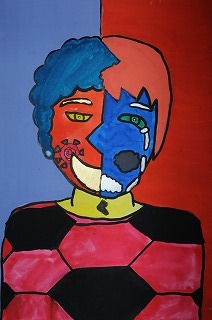 写実的に自画像を描き、それをもとにピカソを学び、自分の内面をデザイン的に表現しました。