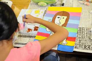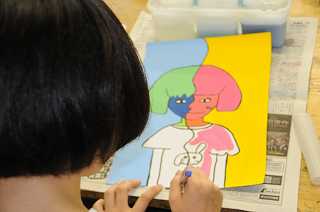 自画像をデザイン化し、作品に仕上げています。