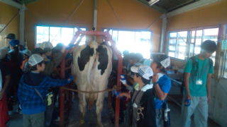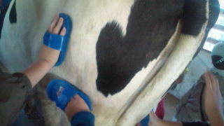 八ヶ岳ふれあいファームにいます。搾乳体験が終わりブラッシングをしています。11:50