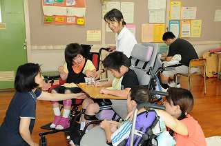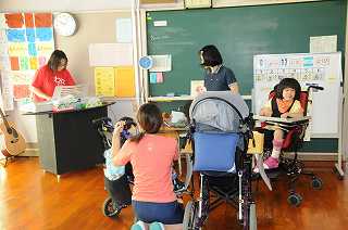 朝の会が始まりました。名前を呼んで返事をする歌を歌っています。