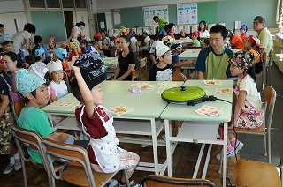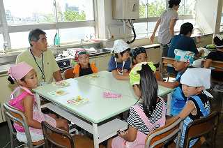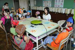 餃子ピザが焼き上がるまで、班ごとにお話をしながら待っています。