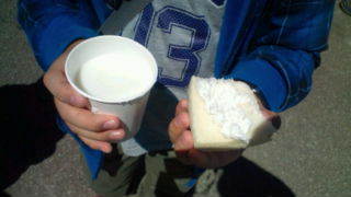 八ヶ岳ふれあいファームにいます。バター作り体験です。できたバターをパンにつけ食べました。12:35