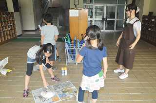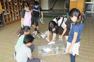 お面にスプレーで色を付けて、鉄仮面らしくしていきます。