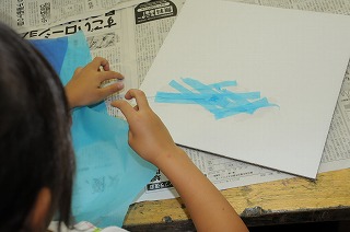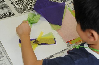「おもいをのせて」という課題で、お花紙を使っていい色になるように組み合わせています。