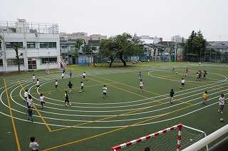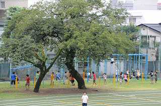 雨の上がった中休みに、子どもたちは元気よく外遊びをしました。