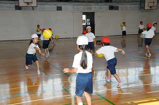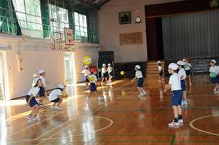 ボールを使った運動遊びをしてます。