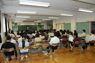 授業の後で、めぐろサポートセンターの遠山和彦先生をお迎えし講演会を行いました。演題は「道徳教育について」で、「心の教育により自立の成長を促し道徳性を高める」ことの大切さを話してくださいました。なお、この講演会は、四中校区の地域教育懇談会を兼ねました。