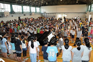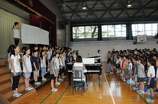全校児童でビリーブを歌っています。とてもきれいな声です。